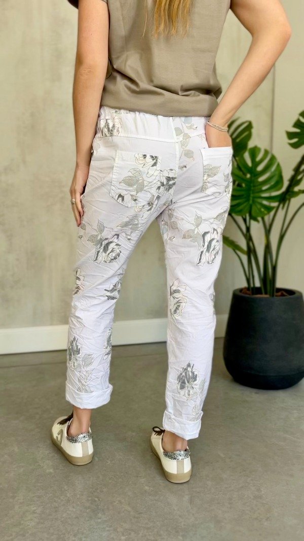 Art.248-0089 - Babucha italiana blanca con flores ribeteadas con dorado
