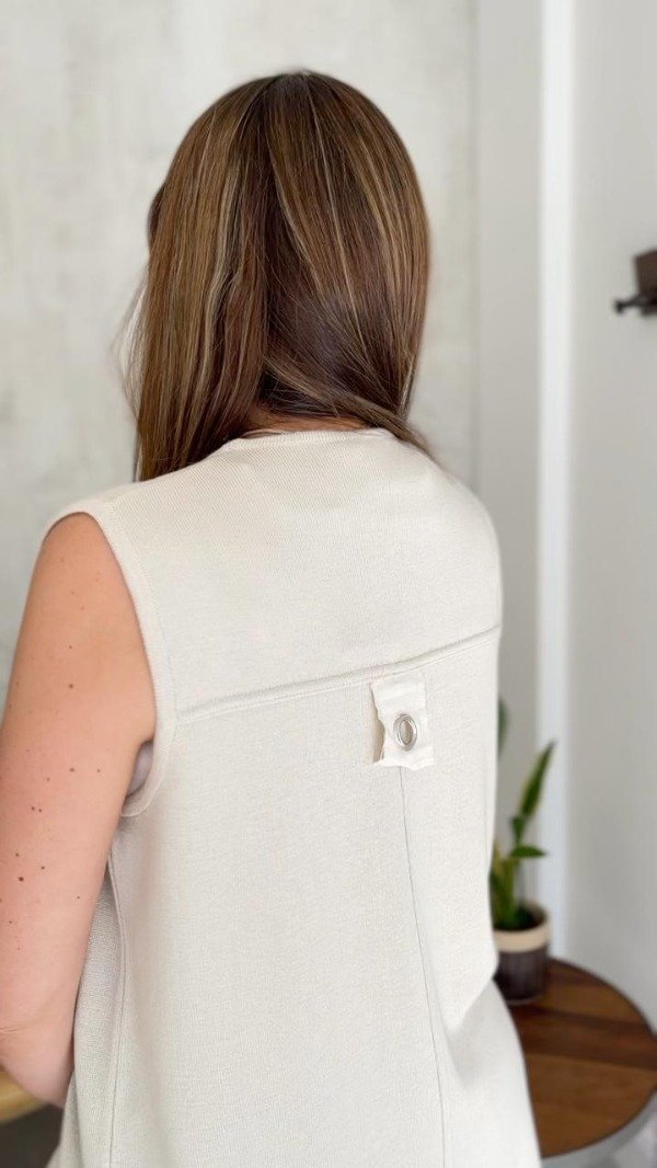 .-ART.-7613.-Chaleco, viscosa abierto con detalles en espalda y laterales...
